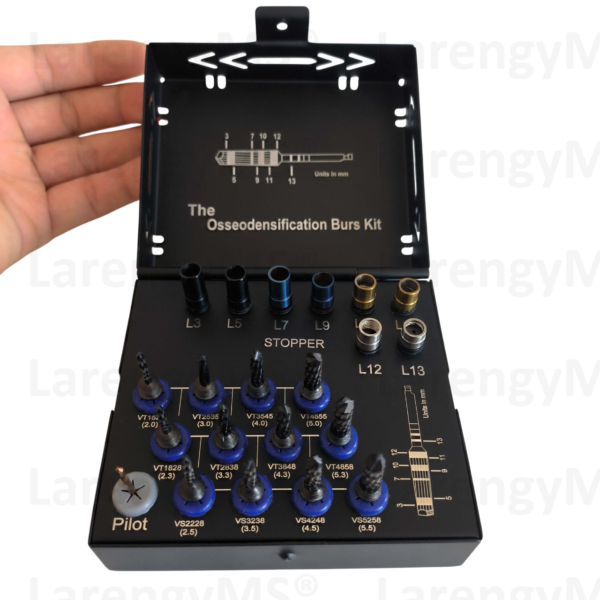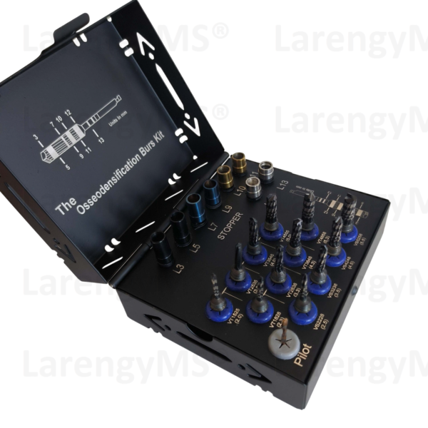 Kit condensador óseo especializado de 21 piezas para estabilizar implantes y acelerar la cicatrización.. Fabricado en Acero Francés y Alemán.(LarengyMS®).